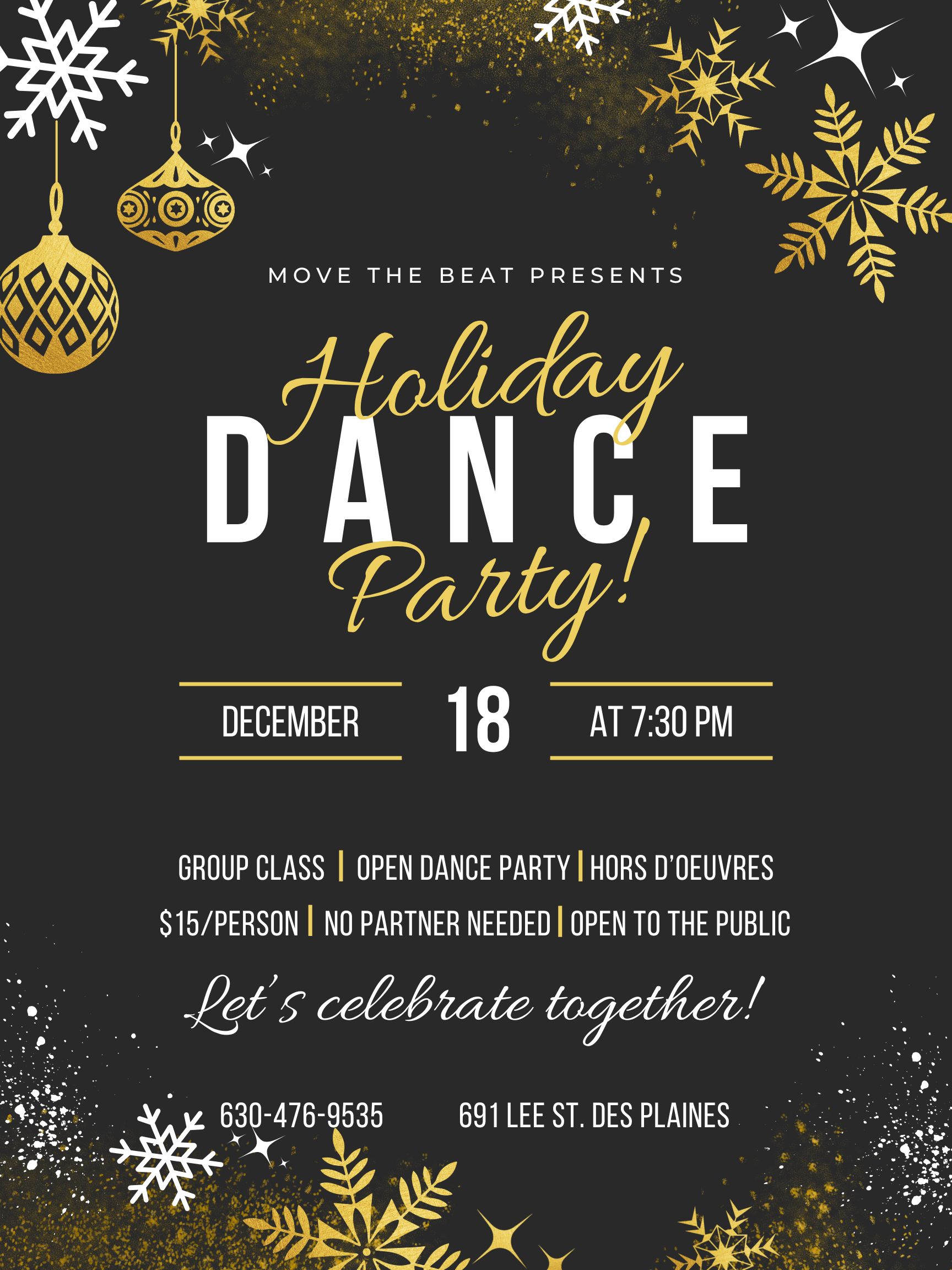 Let's celebrate together! Join us for an open-level group dance class, followed by an epic party including ballroom, Latin and swing dance music, along with your favorite holiday bangers. Hors...